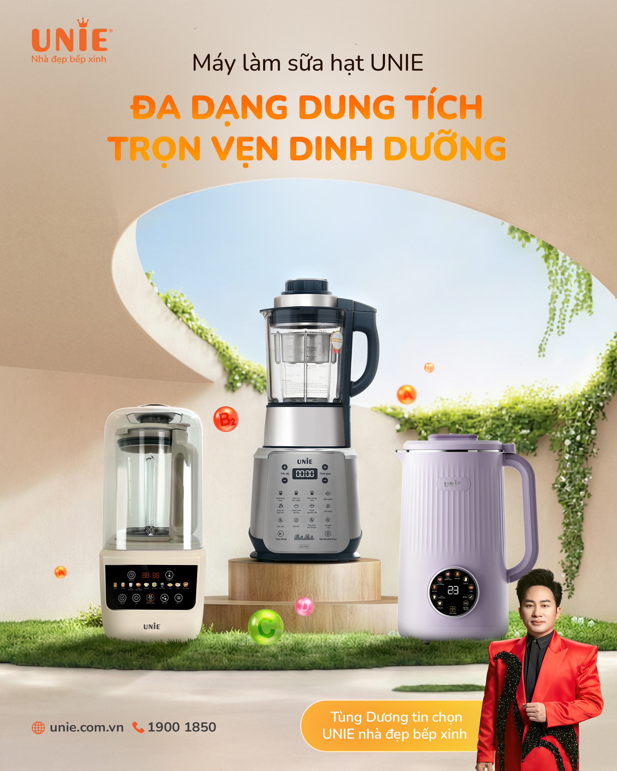 Máy làm sữa hạt UNIE UCB15 dung tích 1.5L, giảm ồn 30%, 10 chức năng nấu